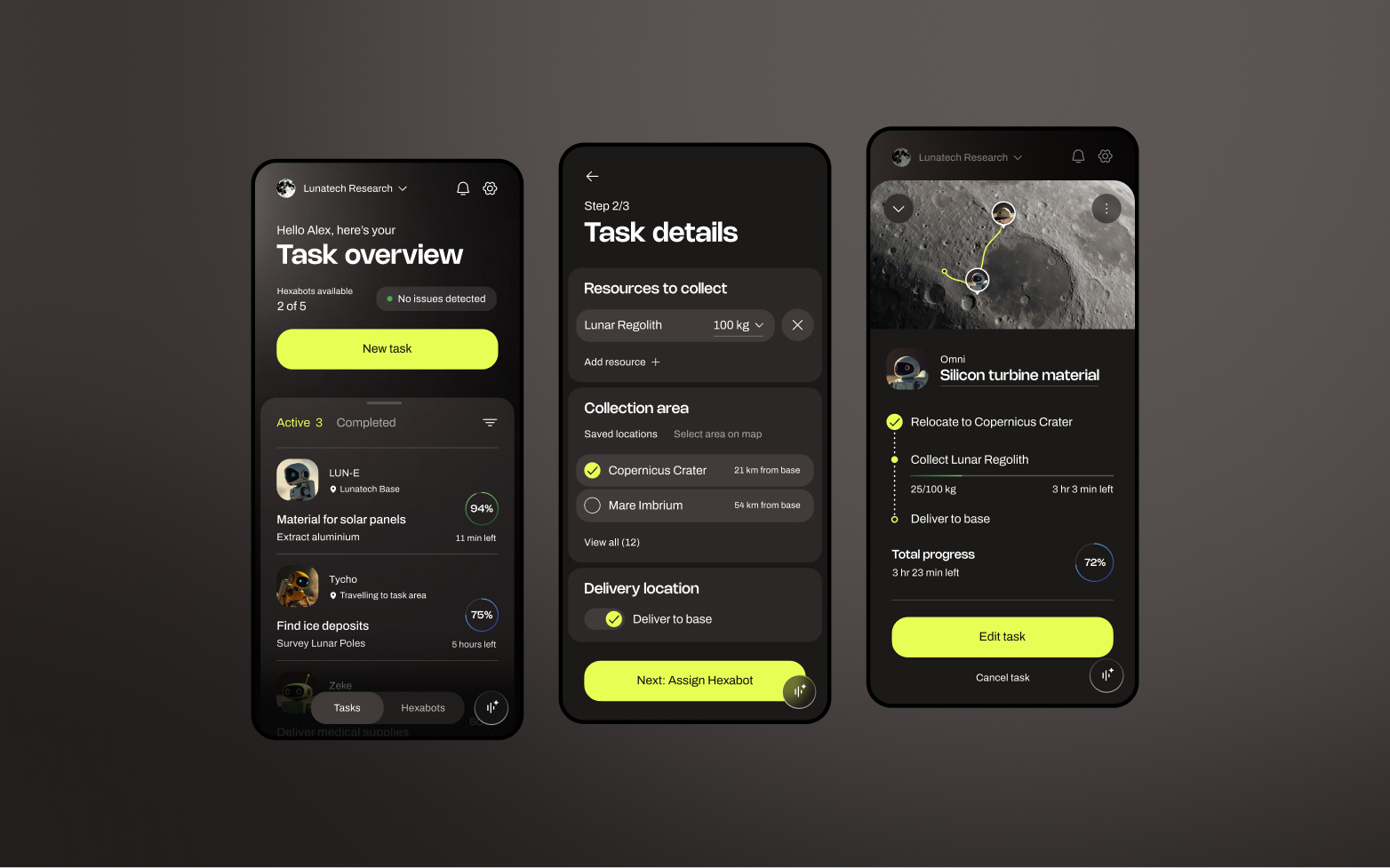 A fictive app where you assign tasks to robots on the moon (personal project/contest entry).